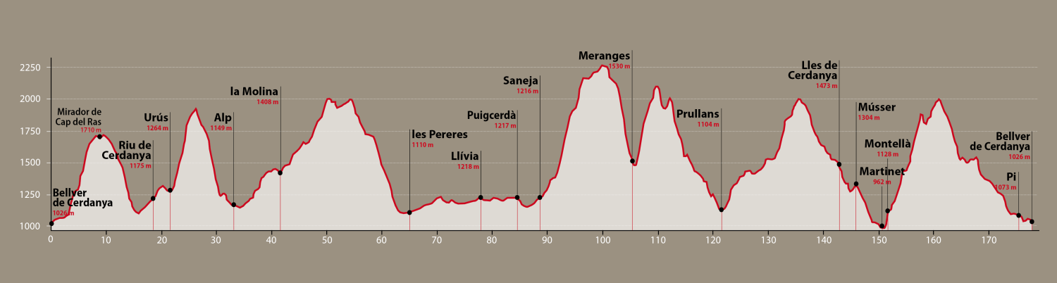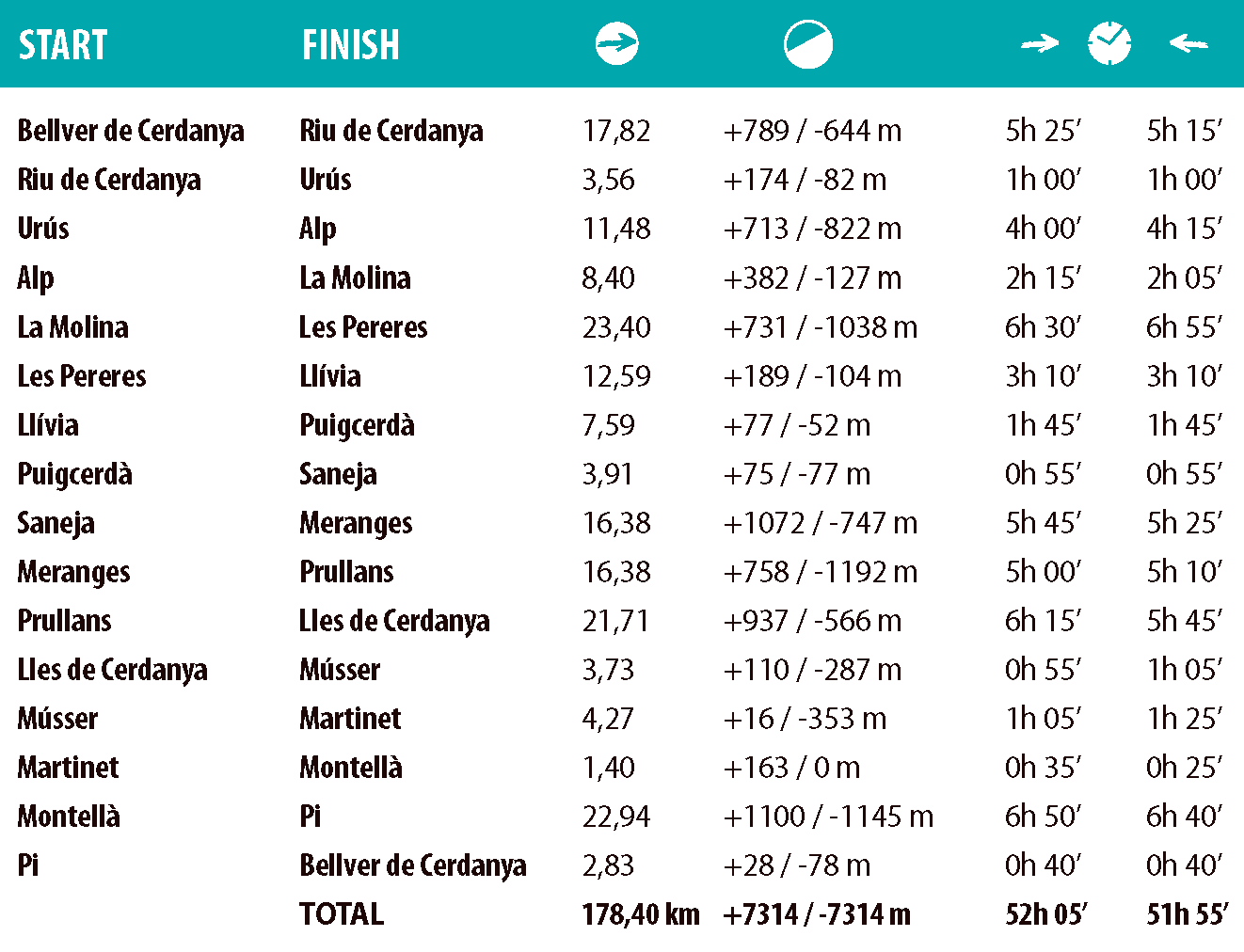 Con un recorrido total de 178 km y más de 14.628 m de desnivel acumulado, nos encontramos en un entorno de media y alta montaña, con alturas que van de 960 m a 2.257 m.