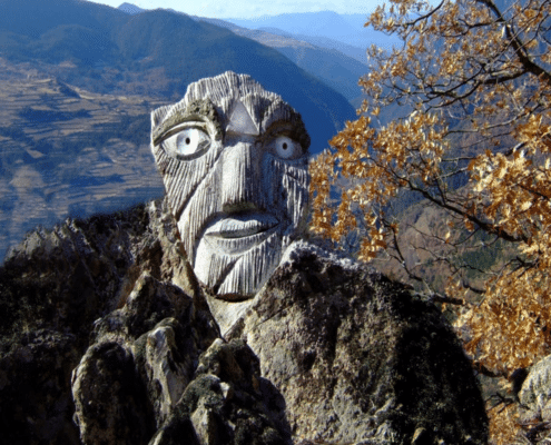 ROCAVIVA is located between Cerdanya and Alt Urgell, within the municipal areas of Lles de Cerdanya and Pont de Bar. It is a sculptural space created by the artist Climent Olm, originally from Músser, between 1986 and 2010, part of which has been open to visitors since 2017. The entire work follows the principles of Land Art, which uses natural materials and settings as a means of expression, with influences from the art of North American Indigenous peoples and from Picasso’s work. The proposal to integrate art with the landscape has been developed through the opening of paths that shape the park and allow for the progressive contemplation of the sculptures along several routes, like a discovery game that blends sculpture and landscape.