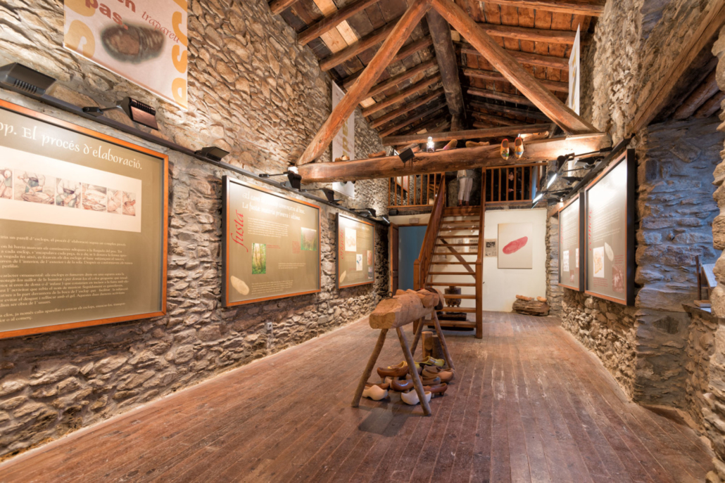 A la plaça Major de Meranges, el museu explica d’una manera didàctica la història d’aquest calçat i el procés d’elaboració, des de la dificultat per obtenir la fusta, que ha de tenir unes característiques especials, fins a les eines que es feien servir i la forma de treballar-los i de vendre’ls.