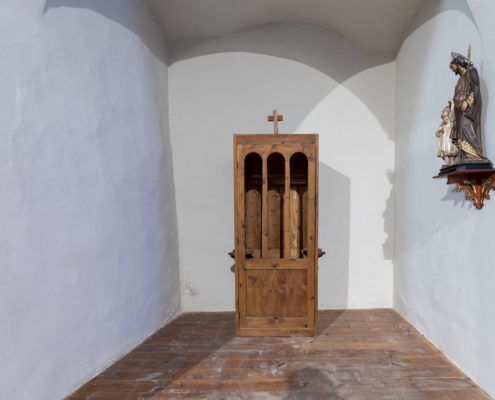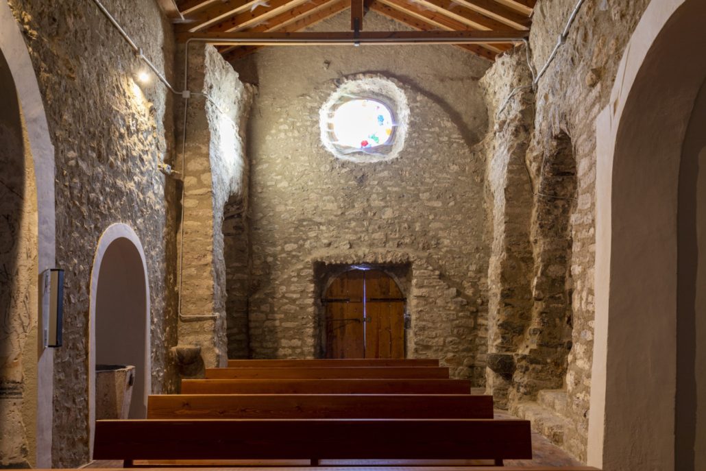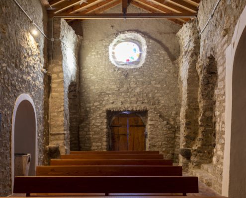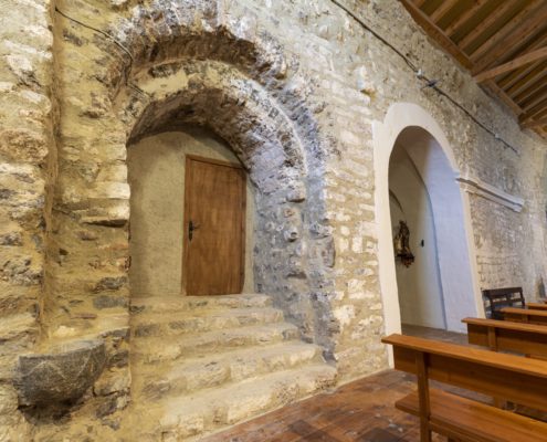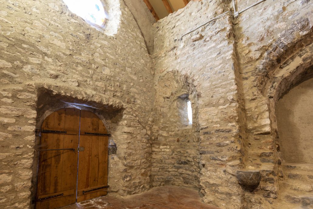 L’església és un edifici molt modificat, fins al punt que l’accés actual es troba al lloc que ocupava l’absis romànic (que amb la restauració s’ha dibuixat amb carreus a terra); és per aquest motiu que a l’interior trobem les dues absidioles romàniques del presbiteri al costat de la porta d’accés.