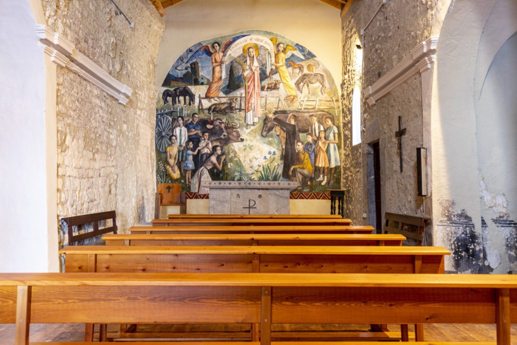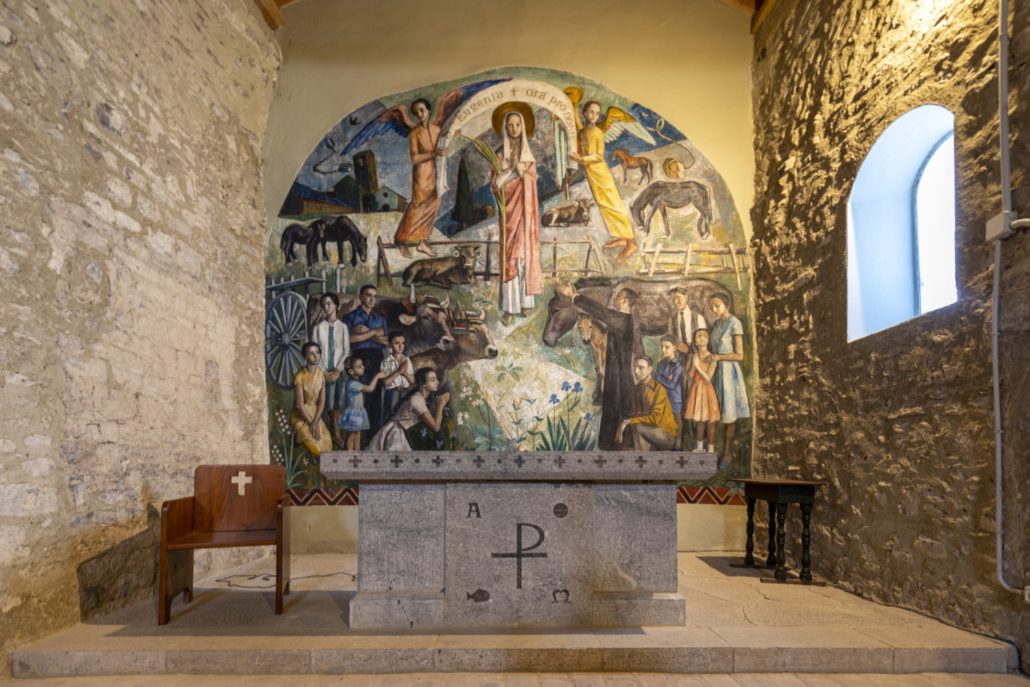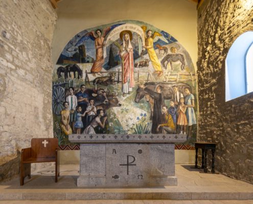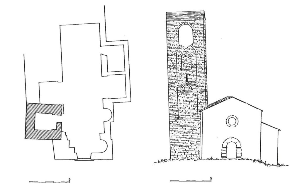 La seva singularitat rau en el campanar inclinat, “la Torre de Pisa cerdana”. És l’únic campanar romànic sencer de la Cerdanya. Amb un desplom d’1,25 m, ha estat restaurat i consolidat. S’accedeix des de l’interior mitjançant una arcada que conserva pintures romàniques. Externament el primer pis presenta, a les quatre façanes, decoració d’arcuacions llombardes; el segon finestres geminades que han estat anul·lades, algunes en fer la consolidació de la torre, una obra que s’ha centrat en la fonamentació i en la subjecció des de l’interior.