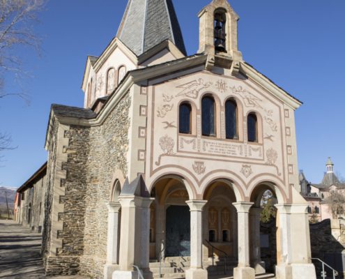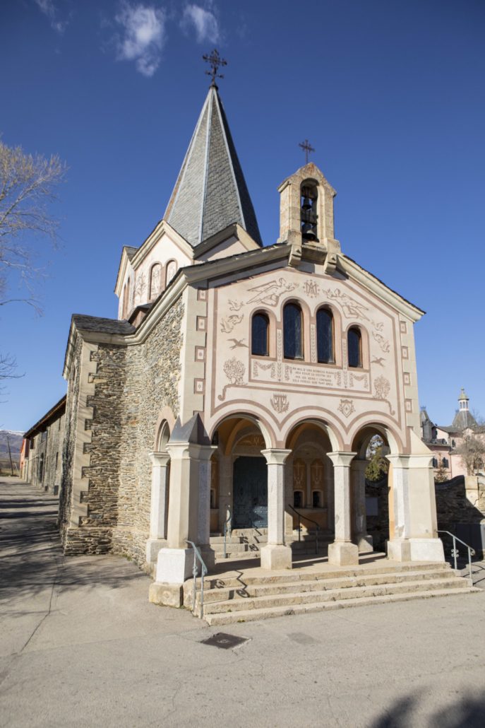 La seva construcció, de pedra, arrebossat i coberta de llicorella, es caracteritza per la seva cúpula acabada amb un remat poligonal i piramidal revestida de llicorella.