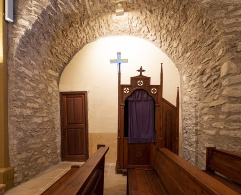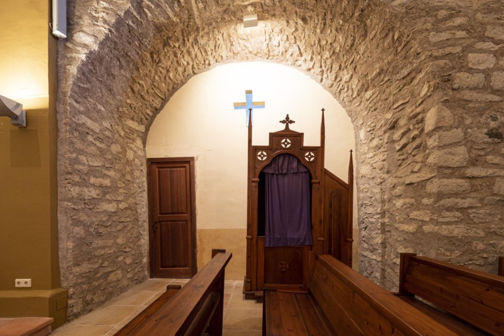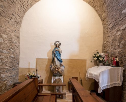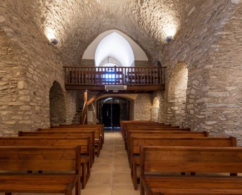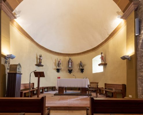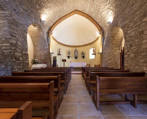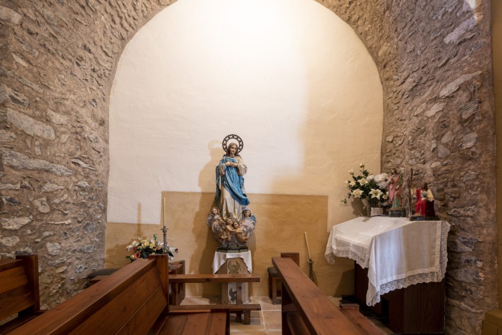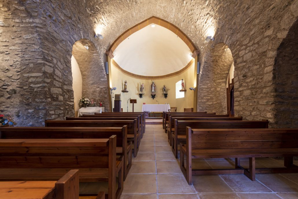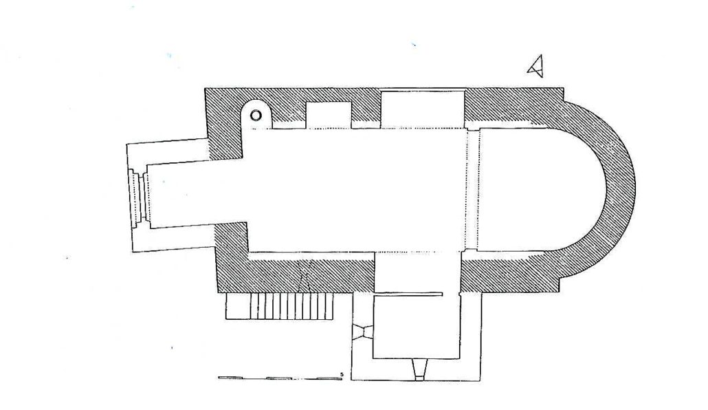 L’edifici del segle XII era de factura senzilla amb una nau i un absis semicircular a llevant. Avui podem identificar l’absis, la paret del frontispici visible darrere de la construcció del campanar i la portalada. La nau es va modificar amb tres capelles laterals, la sagristia i una torre campanar a ponent sota la qual es va obrir la porta d’accés.
