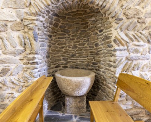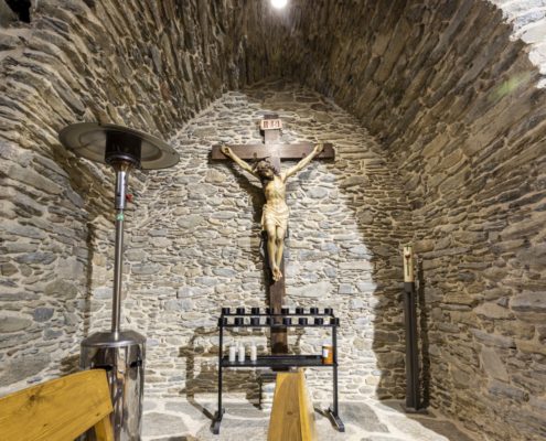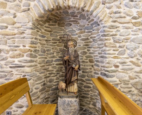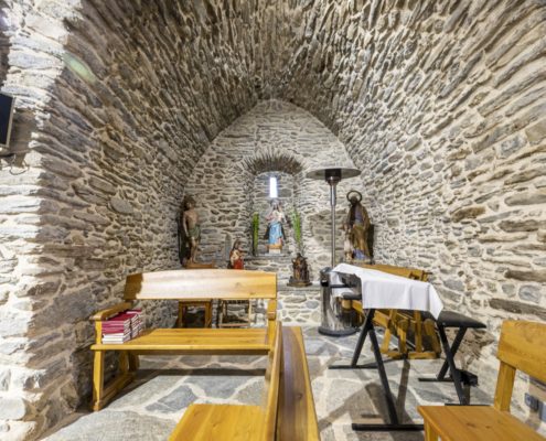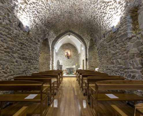 És un edifici del segle XIII que, malgrat les modificacions posteriors, conserva parets amb opus spicatum. La reforma més important va ser la substitució de l’absis primigeni per una edificació irregular que fa d’absis i sagristia. A la nau de planta rectangular i coberta amb volta apuntada se li van afegir dues capelles laterals. La porta es va obrir a la façana de ponent, i està feta amb dovelles ben treballades que dibuixen un arc apuntat, per sobre, s’aixeca un campanar d’espadanya de dos ulls.