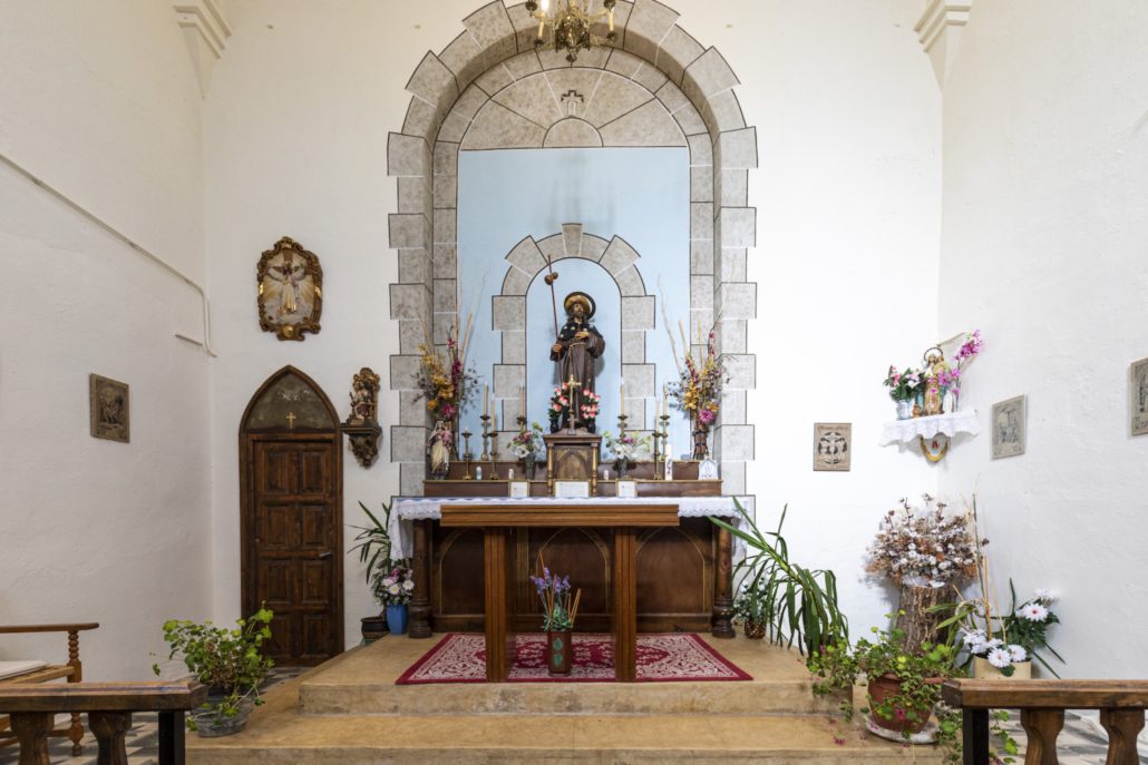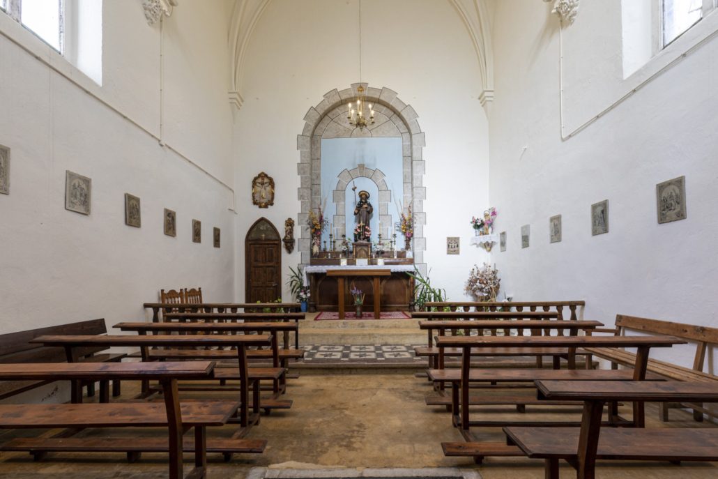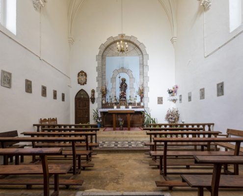 La capella d’un estil neoclàssic consta de tres part: una cripta sota el presbiteri, la capella pròpiament dita i el campanar quadrat que s’aixeca 17 metres. El seu arquitecte Salvador Viñals de Barcelona. El seu retaule, així com diverses pintures eren de Pere Borrell, les quals es perderen amb el saqueig que va patir el 1936.