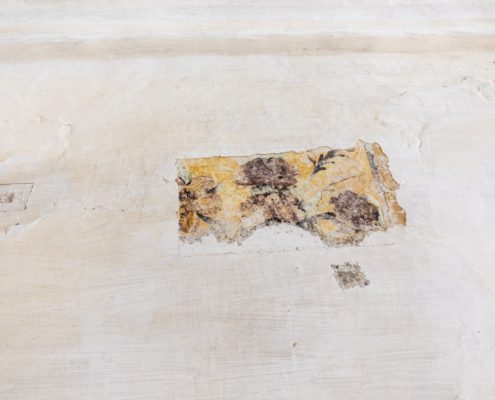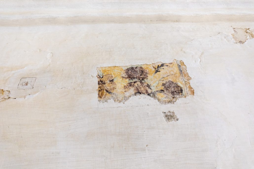 L’interior de l’església està arrebossat de blanc, i en aquells punts on ha desaparegut s’observa la presència de pintures murals, on s’identifiquen motius florals, que podrien tenir una cronologia del segle XVII o XVIII.